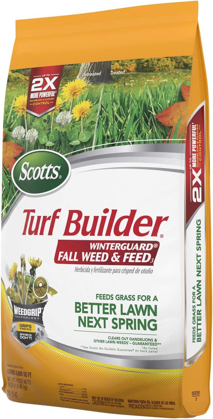 Scotts Turf Builder WinterGuard Fall Weed & Feed3, Weed Killer Plus Fall Fertilizer, 5,000 sq. ft., 14.29 lbs.(12 000 sq. ft.)